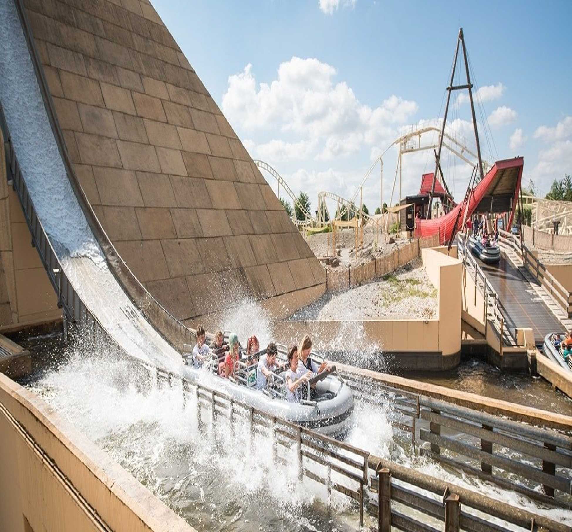Главная гордость парка — американская горка «Huracan» с крутым падением под углом 97°, а также водные горки «Fluch des Pharao», интерактивные карусели, семейные аттракционы, детские зоны и шоу-программы. Каждый тематический мир имеет уникальную архитектуру и атмосферу.