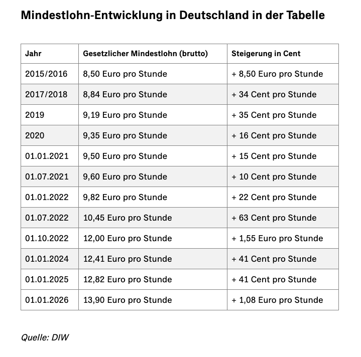 Предыдущие повышения лишь компенсировали потерю покупательной способности из-за инфляции. К такому выводу приходит в своем последнем отчете о минимальной заработной плате Институт экономических и социальных наук профсоюзной фонда Hans-Böckler-Stiftung (WSI). Согласно отчету, за последние десять лет минимальная заработная плата выросла в реальном выражении лишь на 15% по сравнению с уровнем, установленным при ее введении. Причиной этого является исключительно повышение в 2022 году до €12.