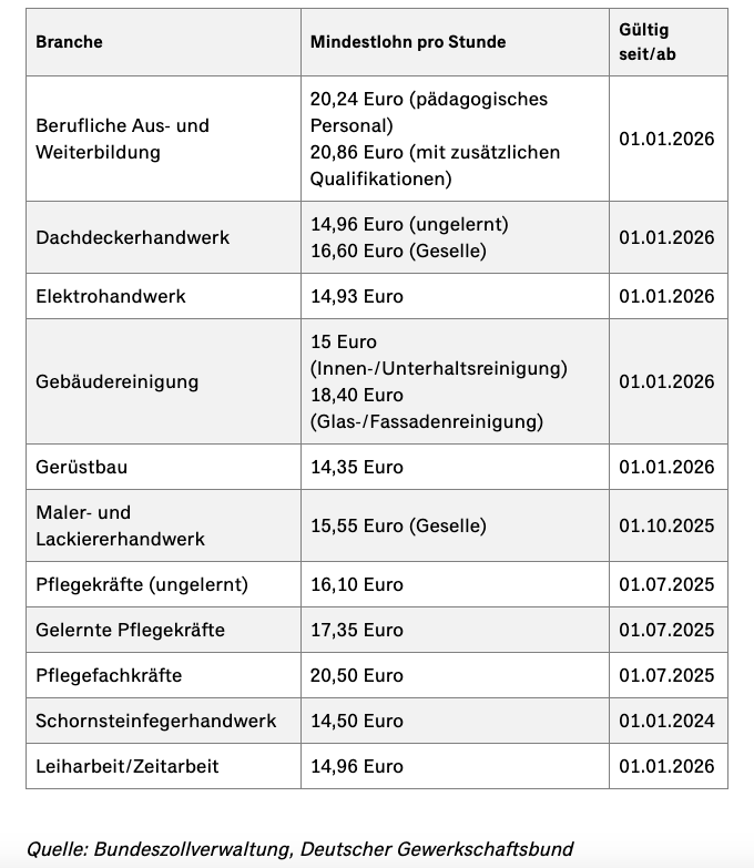 Основой для минимальной заработной платы в отраслях являются Закон о командировании работников (AEntG) и Закон о предоставлении работников (AÜG).